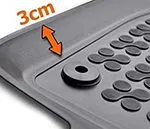 Εξαιρετικά ανθεκτικά και ποιοτικά πατάκια, κατασκευασμένα από μαλακό οικολογικό λάστιχο, χωρίς ανεπιθύμητες μυρωδιές, με ψηλό περιμετρικό χείλος 3 εκατοστά, για μέγιστη προστασία και καθαριότητα του εσωτερικού του αυτοκινήτου σας από χώματα, λάσπες και νερά. Η συσκευασία περιλαμβάνει πιαστράκια (κουμπώματα) για το δάπεδο για τα δύο μπροστινά πατάκια.